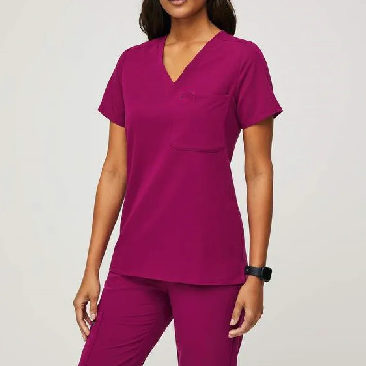 New Design Hospital Salon Summer Uniforms Polyester Rayon Spandex Women Scrub Sets Eco-friendly Woven Nurse Surgical